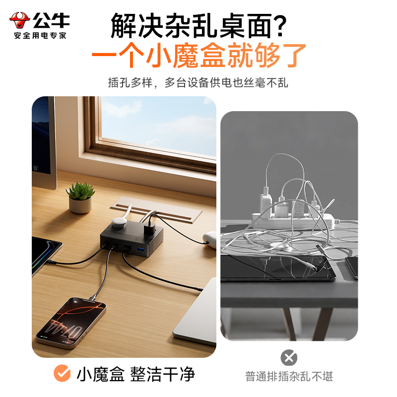 公牛立式插排魔方扩展转换器一转三一转多USB多口快充排插多功能桌面充电站公牛正品桌面多孔插座3C认证插排