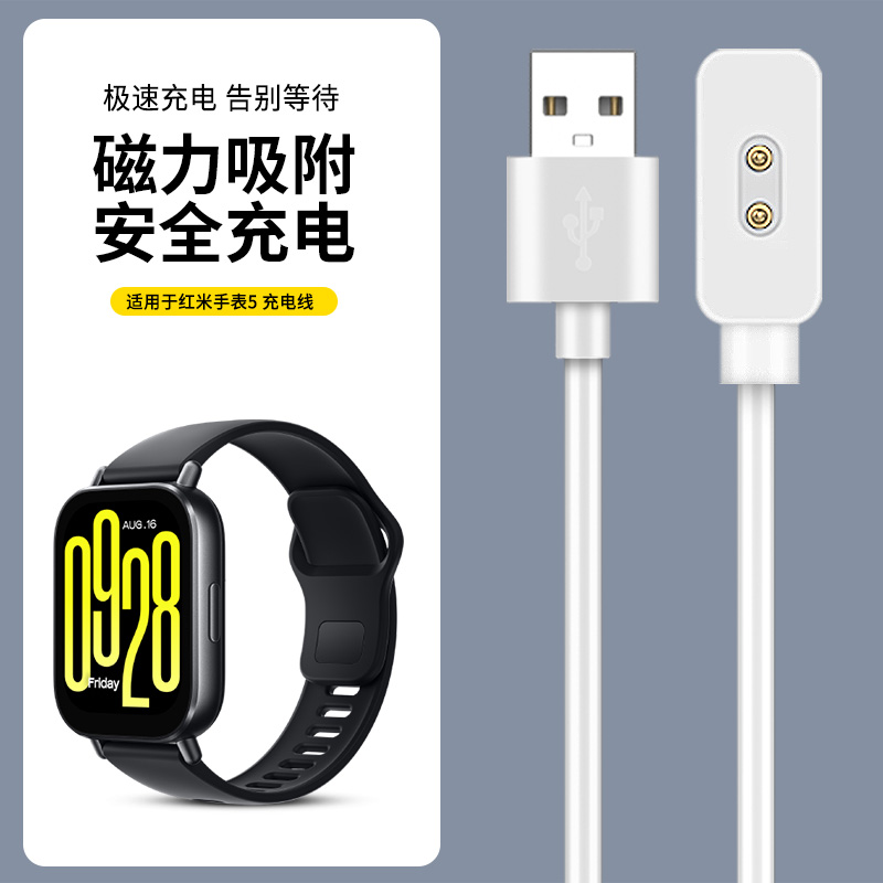 天猫适用红米手表6充电线redmi watch5磁吸式充电器5active充电底座5lite快充线watch4代通用usb电源线非原装配件