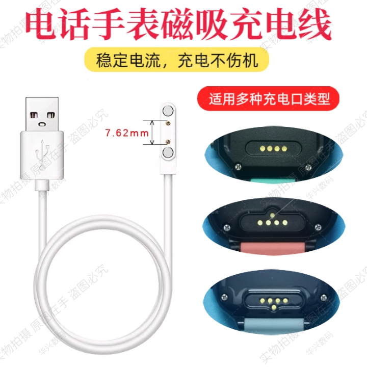 淘宝儿童电话手表充电线通用磁吸充电器2针点4点7.62mm手表磁吸数据线