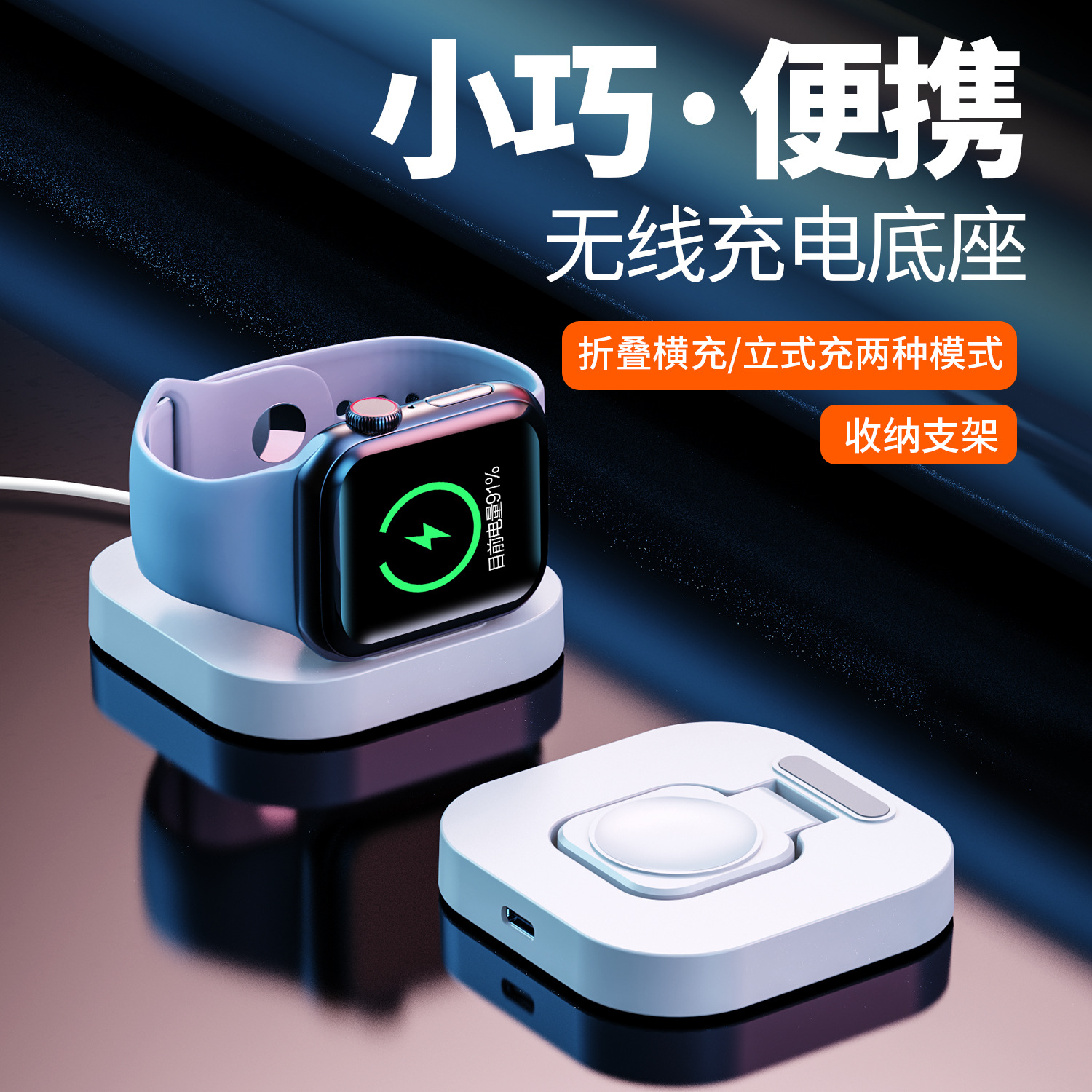 天猫智能手表磁吸无线充电器适用苹果apple watch折叠小巧便携桌面底座无线充支架立式横充轻松收纳