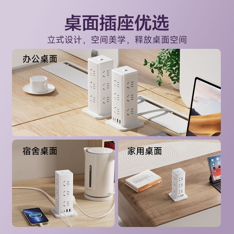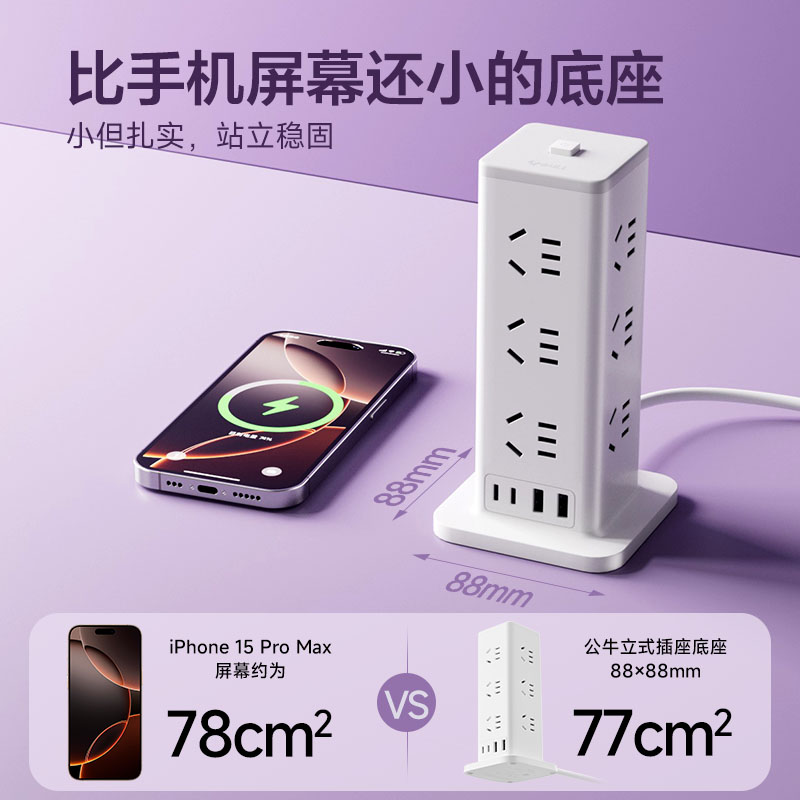 天猫公牛立式插排魔方扩展转换器一转三一转多USB多口快充排插多功能桌面充电站公牛正品桌面多孔插座3C认证插排