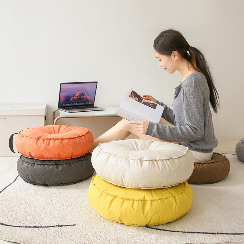 淘宝加厚布艺圆形坐垫懒人日式棉麻蒲团阳台飘窗榻榻米座垫地板坐墩子