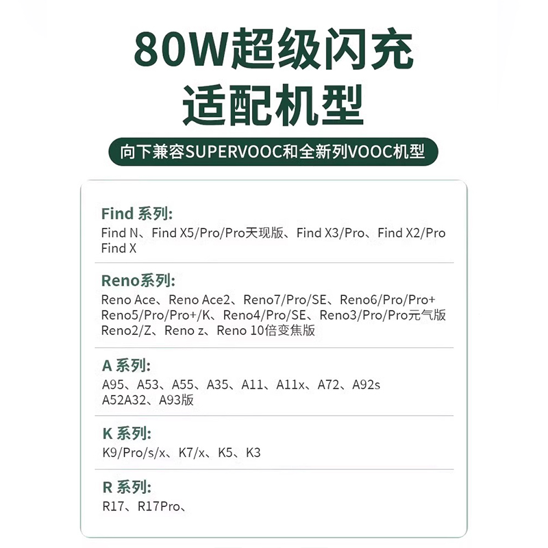 天猫80W适用oppo真我R17原findx5/6手机Reno5pro6充电器typec数据线120W超级闪充Nove8充电头