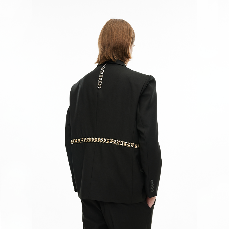 淘宝Unawares. 男女同款 金属链编织镶嵌双排扣西装