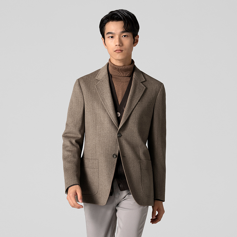 【100%绵羊毛】东博利尼秋冬羊毛西装男士人字纹商务休闲西服外套