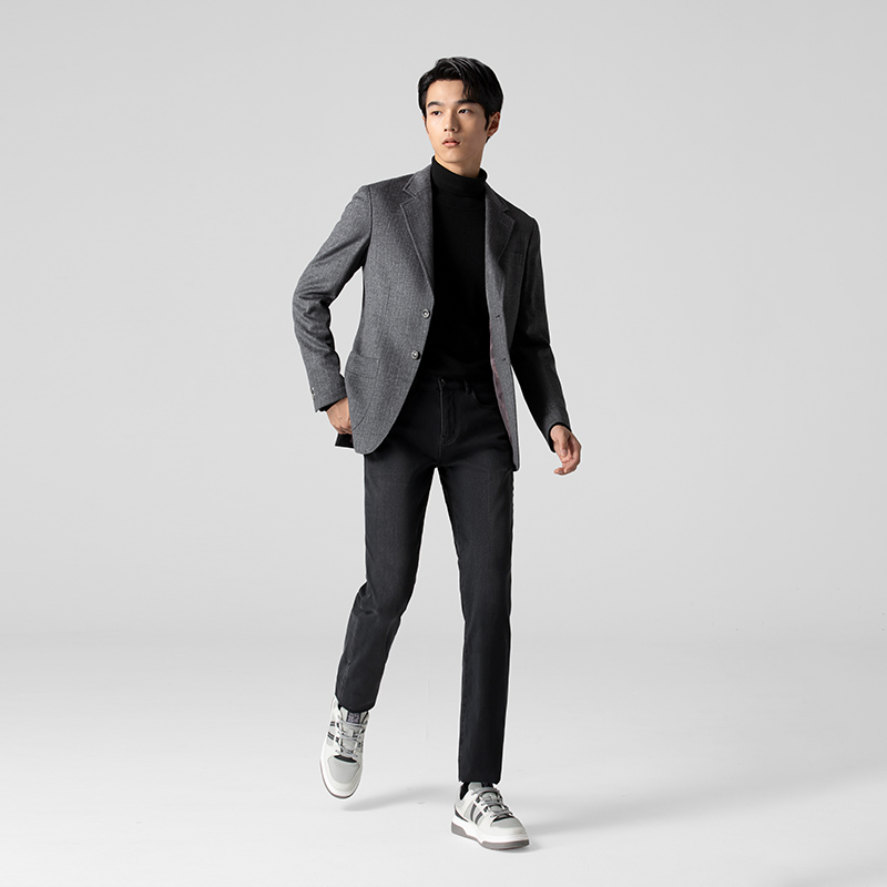雅戈尔男士西服秋季新款官方商务休闲纯棉鸟眼针织单西外套男4821