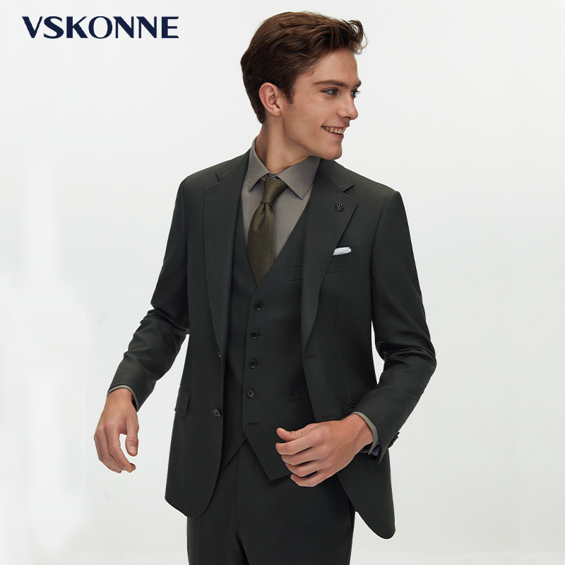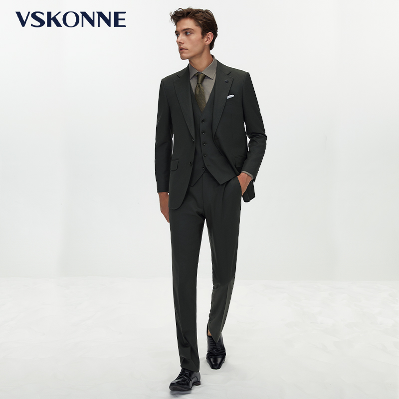 天猫VSKONNE威斯康尼西服男意大利VBC全羊毛绿色老钱风通勤西装外套男