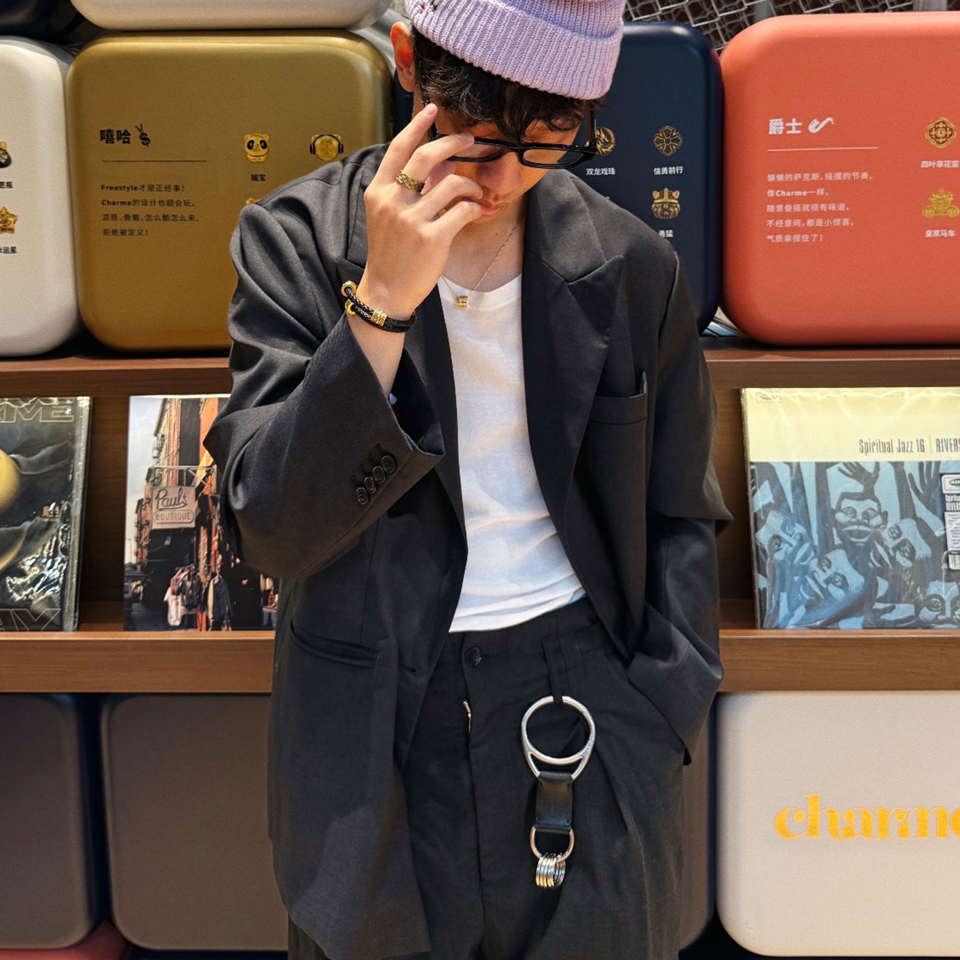 淘SouthStudio西装灰色男女同款25秋毛边剪裁设计宽松单排扣西服