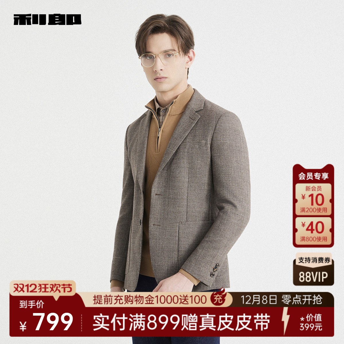 天猫【绵羊毛】利郎官方 西服男士商务休闲格子2025秋季新款西装外套