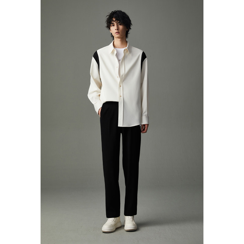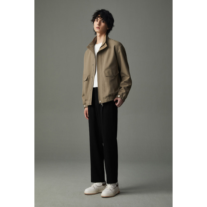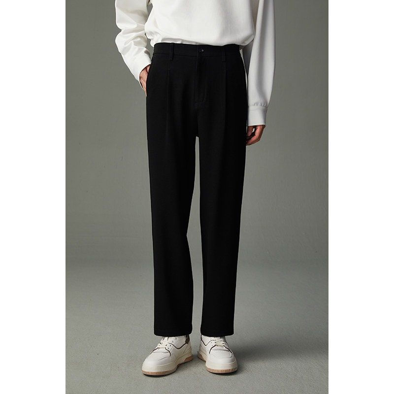 天猫单褶肌理纹休闲裤男士西裤垂坠感直筒春秋季小西装裤宽松长裤子男
