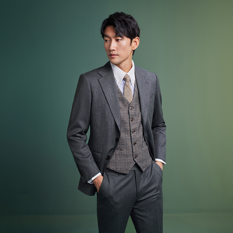 CssuGent(高定50%羊毛)人字纹冬季厚款西服男绅装复古老钱西装