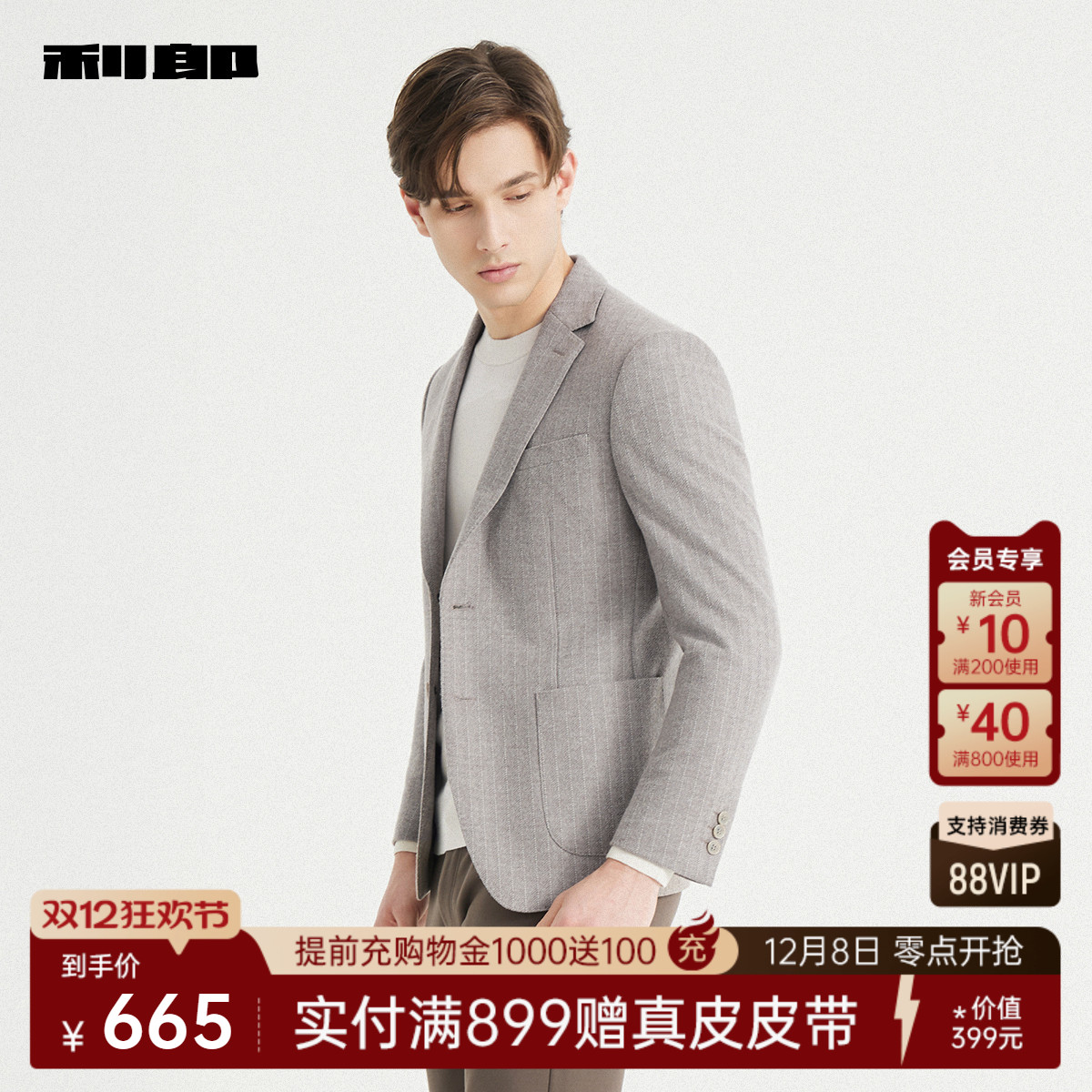 天猫【智能调温/含绵羊毛】利郎官方条纹西服男2025秋季男装单西外套