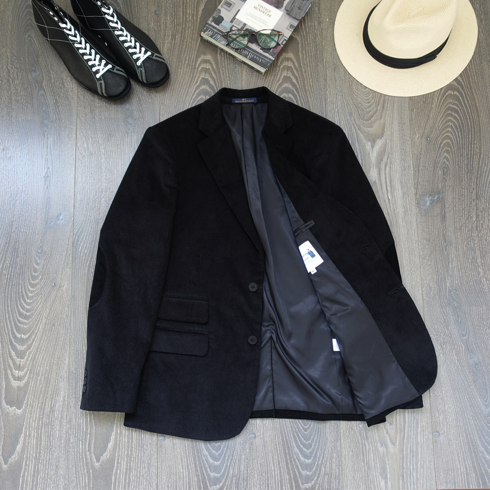 淘西里布美式复古灯芯绒双排扣西服大衣男款中长款条绒外套男非rrl