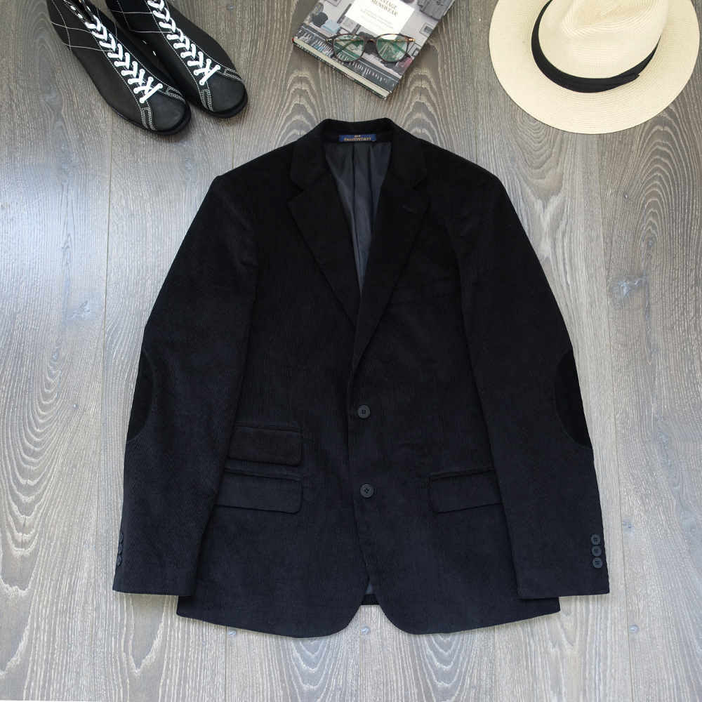 淘宝CAILENOW灯芯绒新款西装外套肘部麂皮猎装男黑色休闲西服商务修身