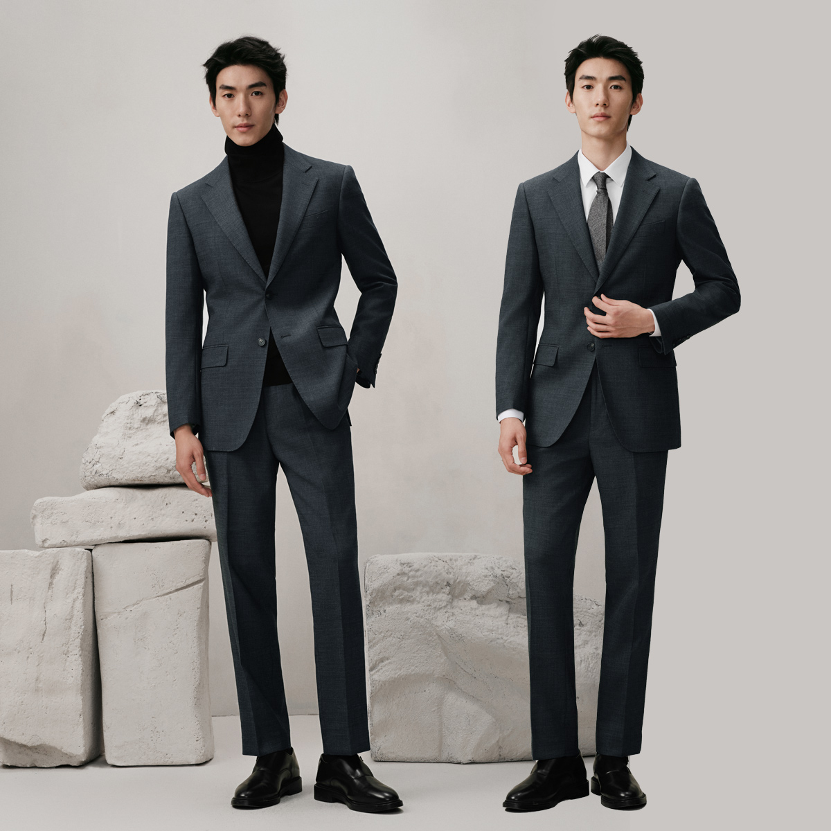 天猫吉约蒙羊毛西服男套装高级感商务灰色结婚新郎礼服正装西服外套