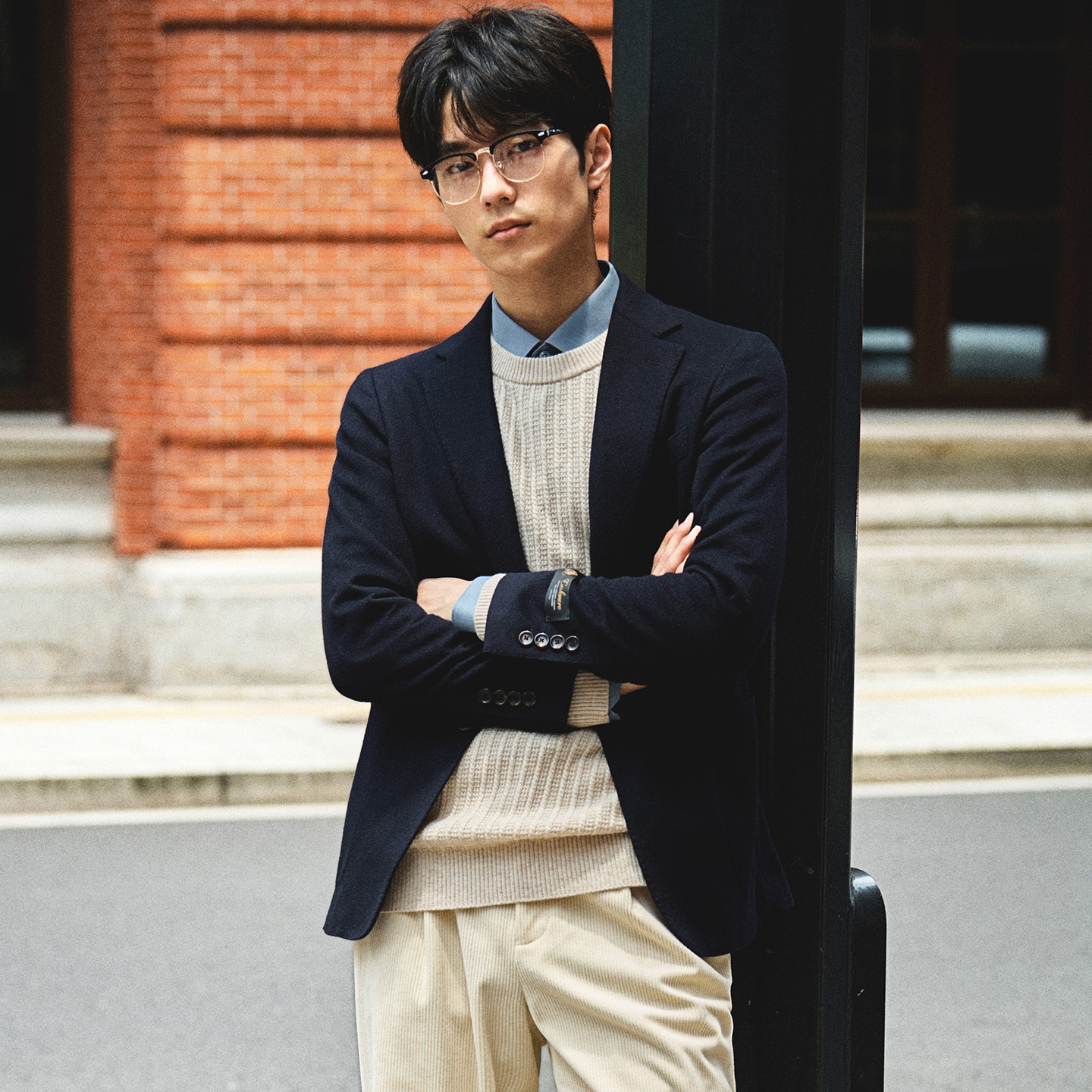 天HIM汉崇 弹力修身加厚休闲西服男柔软绒感复古西装外套 2025冬季