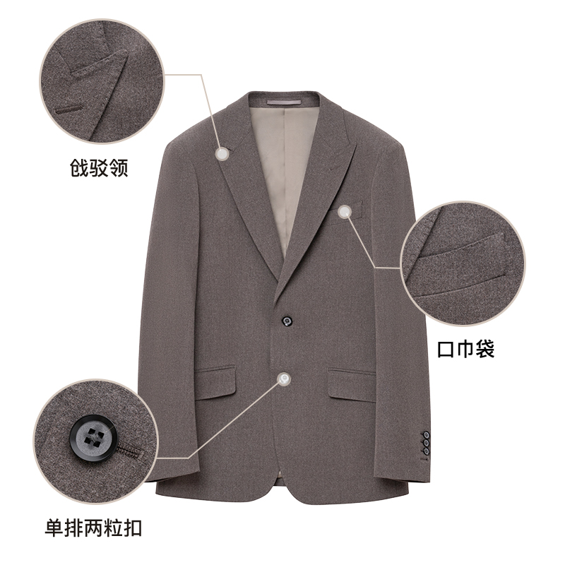 天报喜鸟秋季新款男士商务正装西服上衣单西便西咖色绵羊毛西装外套