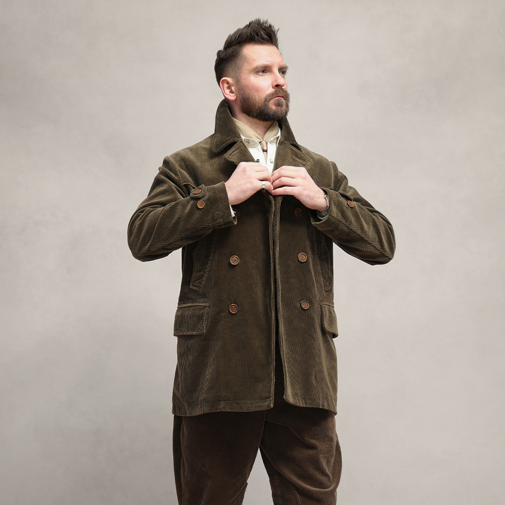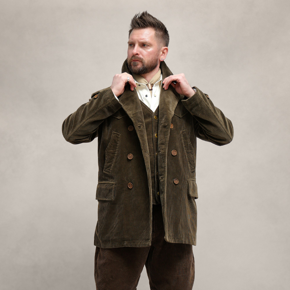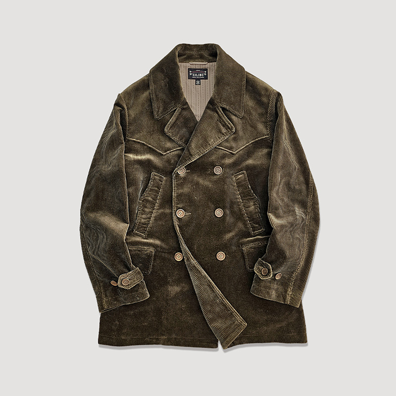 淘宝西里布美式复古灯芯绒中长款双排扣西服农场主条绒大衣风衣非rrl