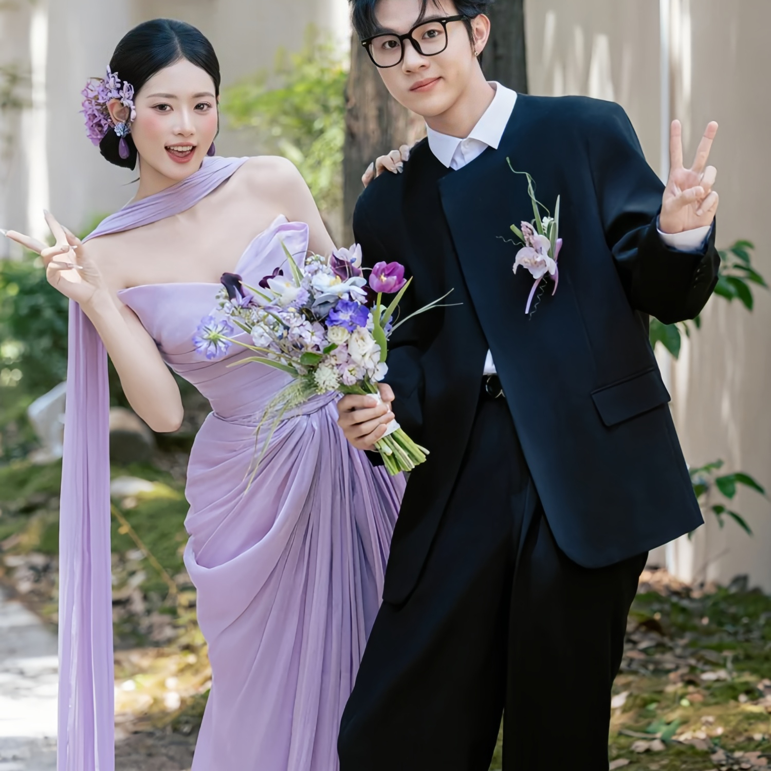 淘宝欢喜橙【亦舟】男士结婚西服痞帅高级感黑色新中式休闲西装套装