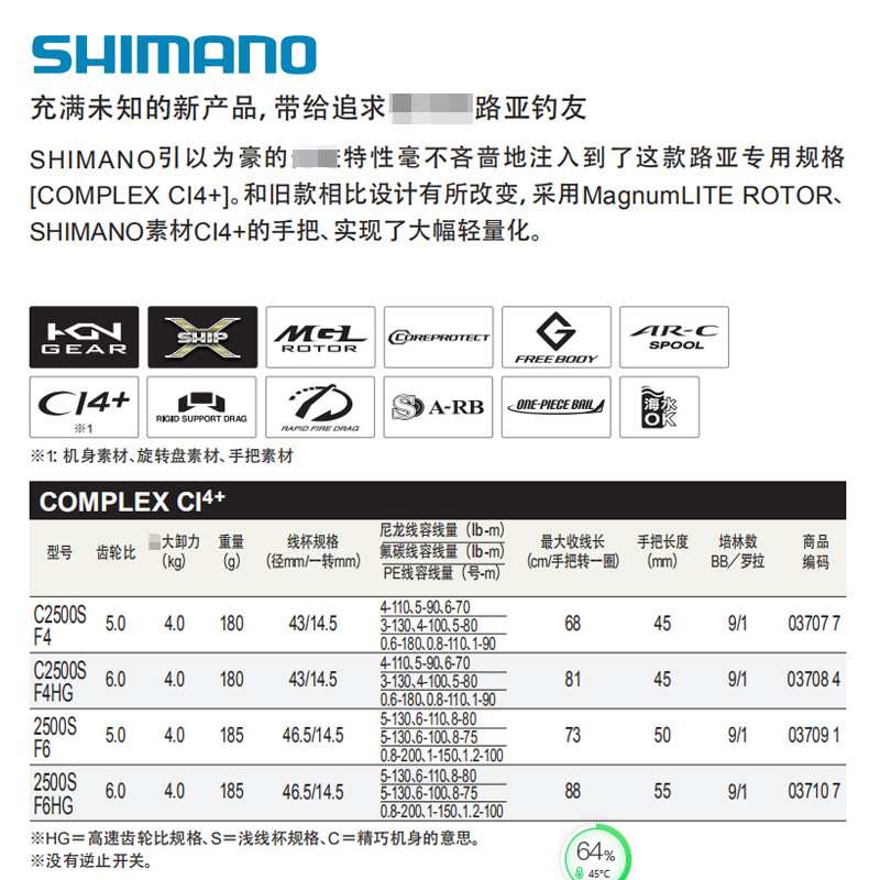 21/25款F6 F4纺车轮COMPLEX XR 斜口浅杯路亚轮渔轮