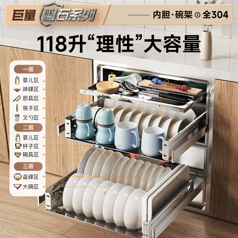 天方太J75消毒柜110L烘干一体嵌入式碗柜厨房母婴级家用多功能内嵌