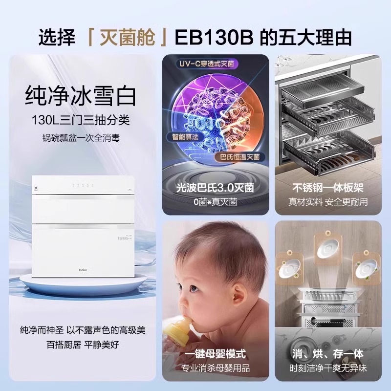 天[热销]海尔医用级灭菌舱150L消毒柜家用嵌入式碗柜碗筷烘干EB150