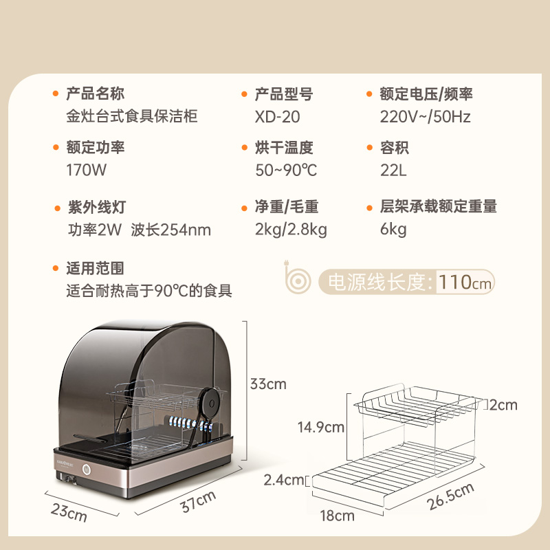 天olayks消毒柜42L小型碗筷台式保洁柜紫外线