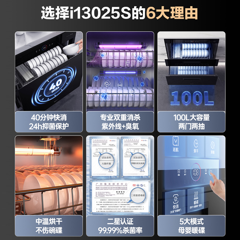 天猫【新品】华帝消毒柜消毒碗柜烘干一体家用嵌入式碗筷消毒i13025S