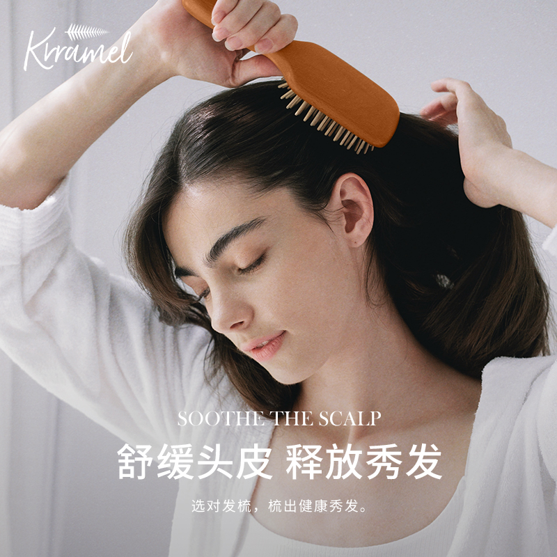 天KRRAMEL松塔猪鬃毛梳子蓬松颅顶头皮按摩梳子女家用头梳生日礼物