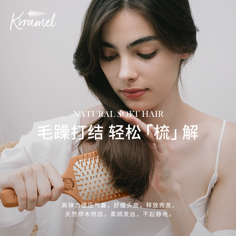 天猫KRRAMEL新升级水滴气垫梳蓬松颅顶按摩梳子卷发梳礼盒女生日礼物