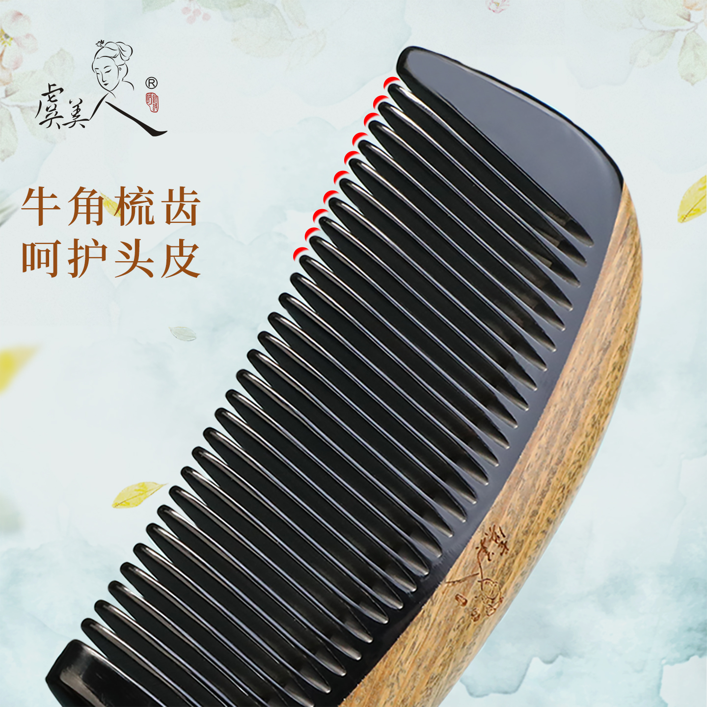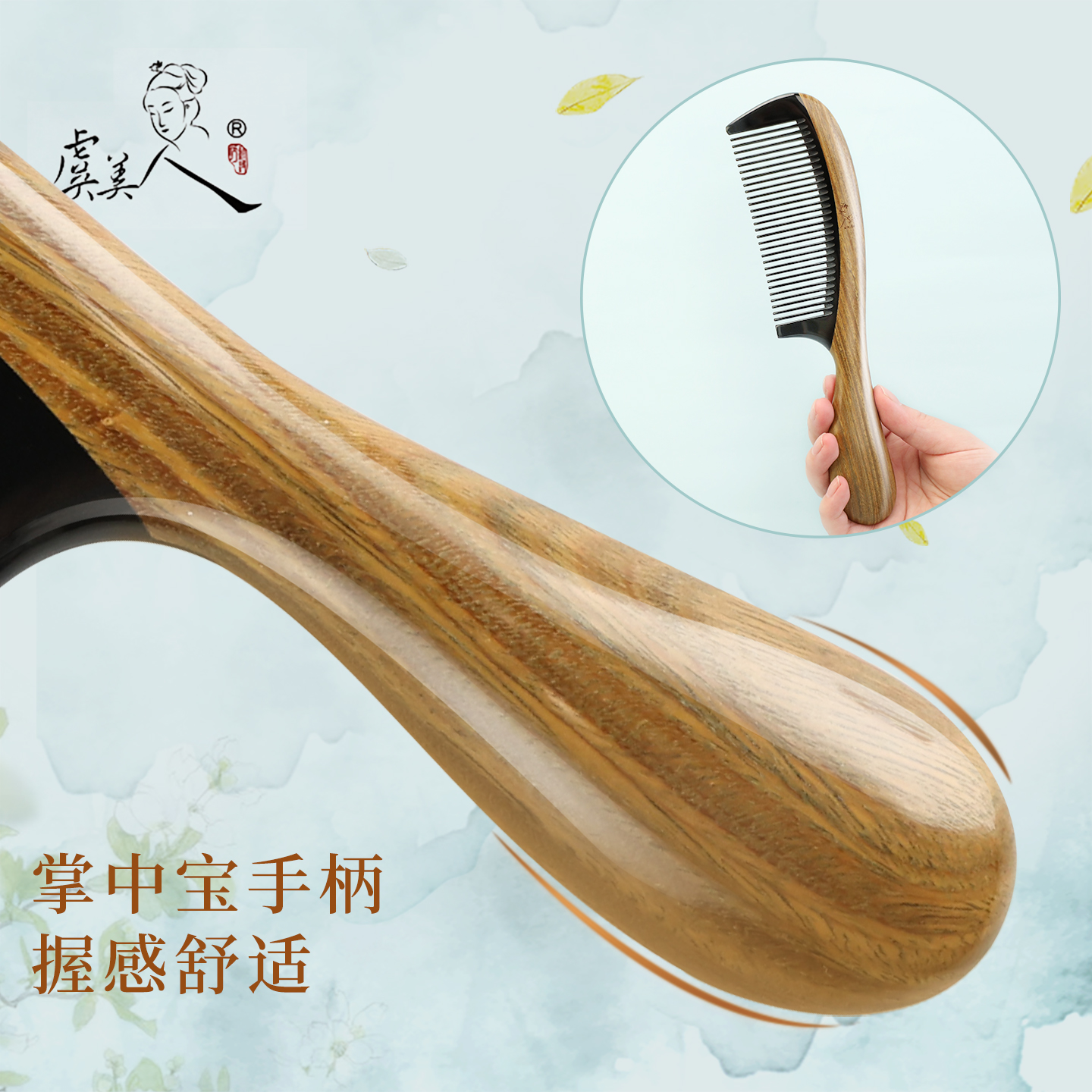 淘宝虞美人梳子绿檀梳子女士木梳檀香木牛角梳生日礼物刻字送女友老婆