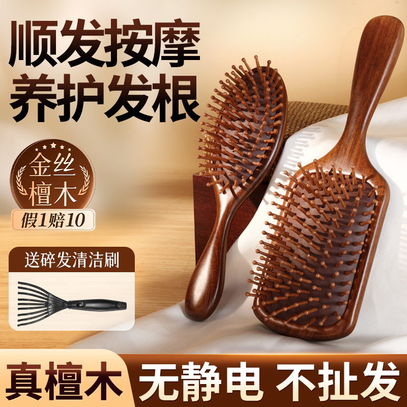 天猫气垫按摩梳子头皮经络女士专用长发蓬松静电脱发家用防气囊檀木梳