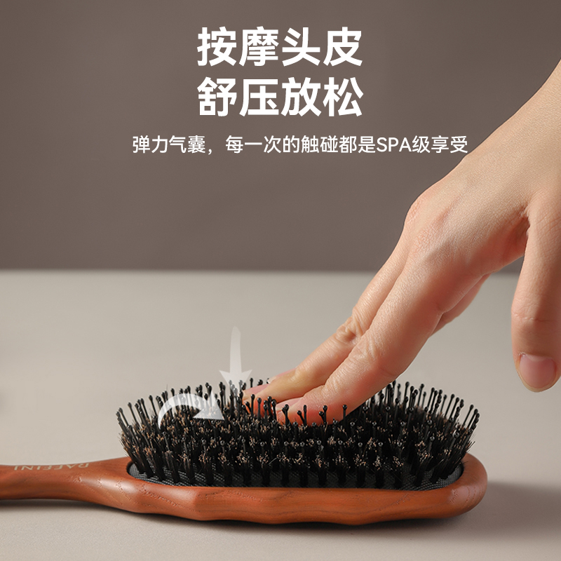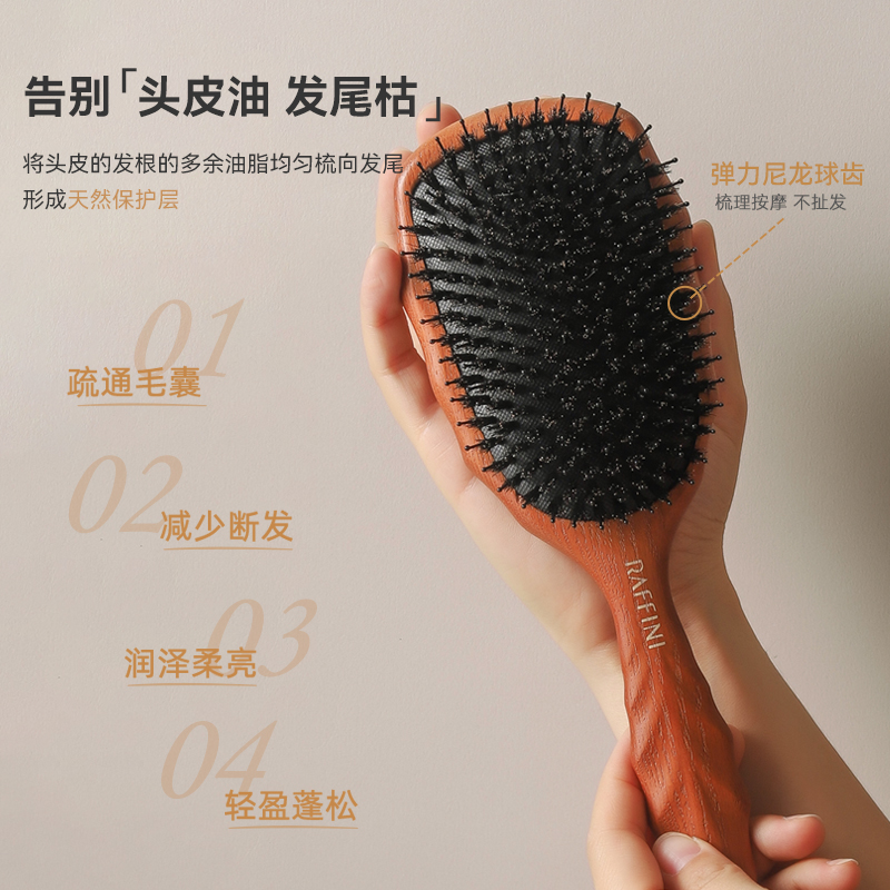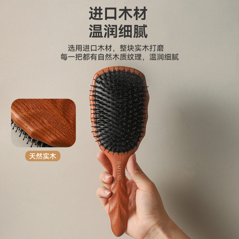 天猫RAFFINI琴叶猪鬃梳鬃毛气垫梳头皮按摩梳女士专用梳子气囊蓬松梳