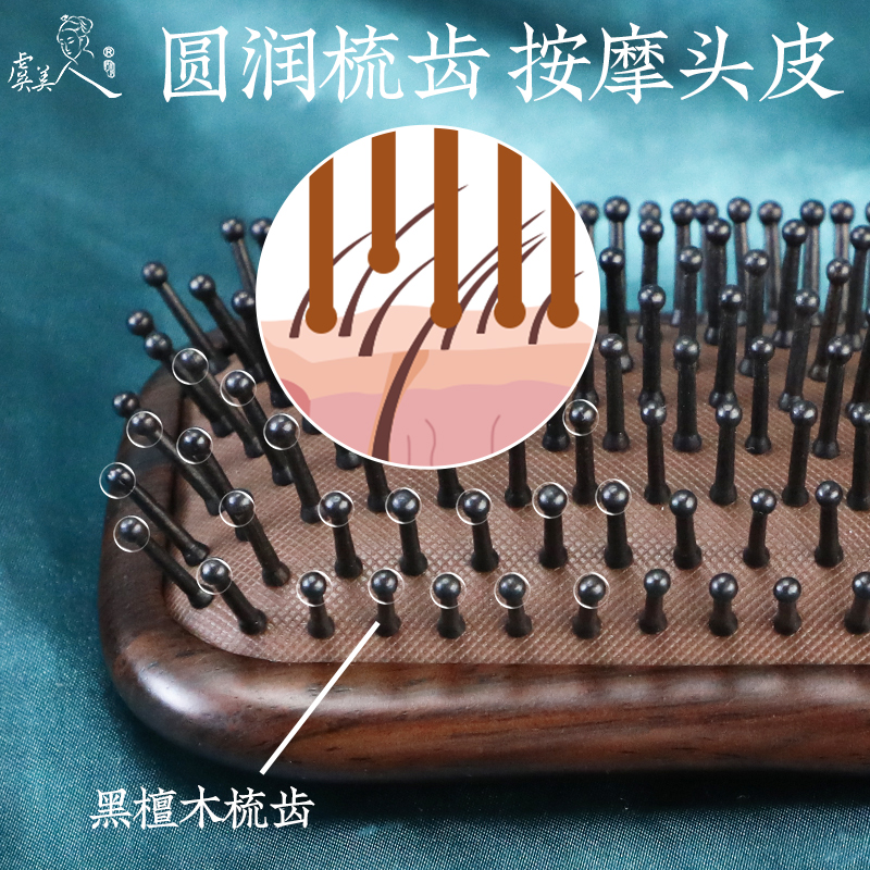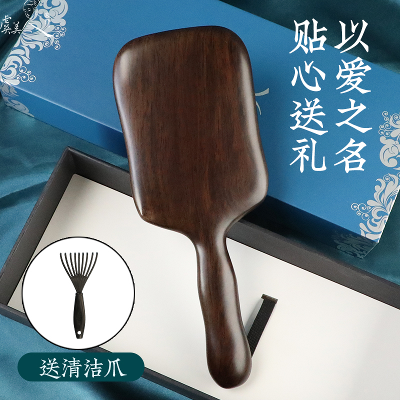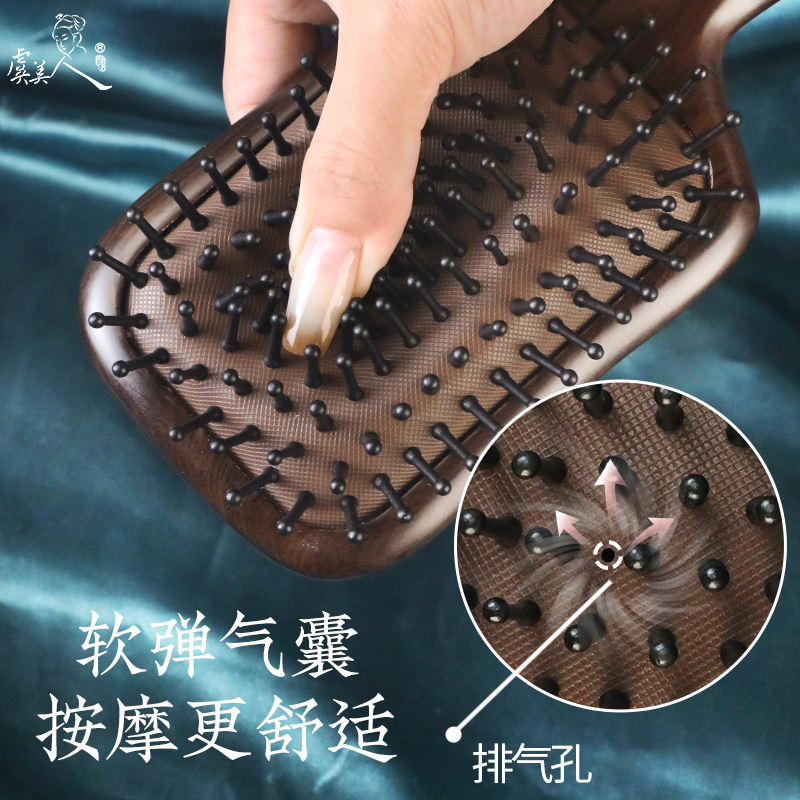 天猫虞美人檀木气垫梳黑檀木女气囊梳大号梳子按摩梳生日礼物送女友