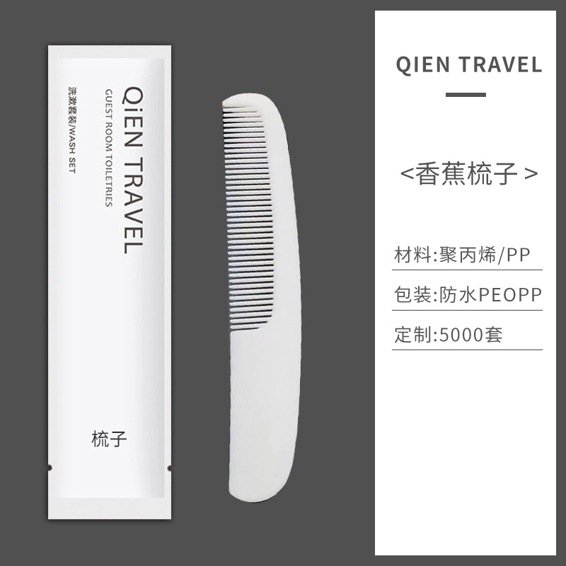 这是一款专为酒店、宾馆以及民宿设计的优质一次性洗漱用品套装。产品包含各种实用洗漱用品,包括定制的梳子。这款梳子采用优质木材和塑料材质,设计精致且实用性强。无论是木梳还是塑料梳,都能确保您的使用体验舒适顺畅。一次性使用的设计既方便了旅客的使用,又确保了卫生和便捷性。这款套装是酒店和民宿提供高品质服务的理想选择,让您的客人感受到家的温馨和舒适。选择我们的一次性洗漱用品套装,为您的住宿业务增添一份专业与品质。