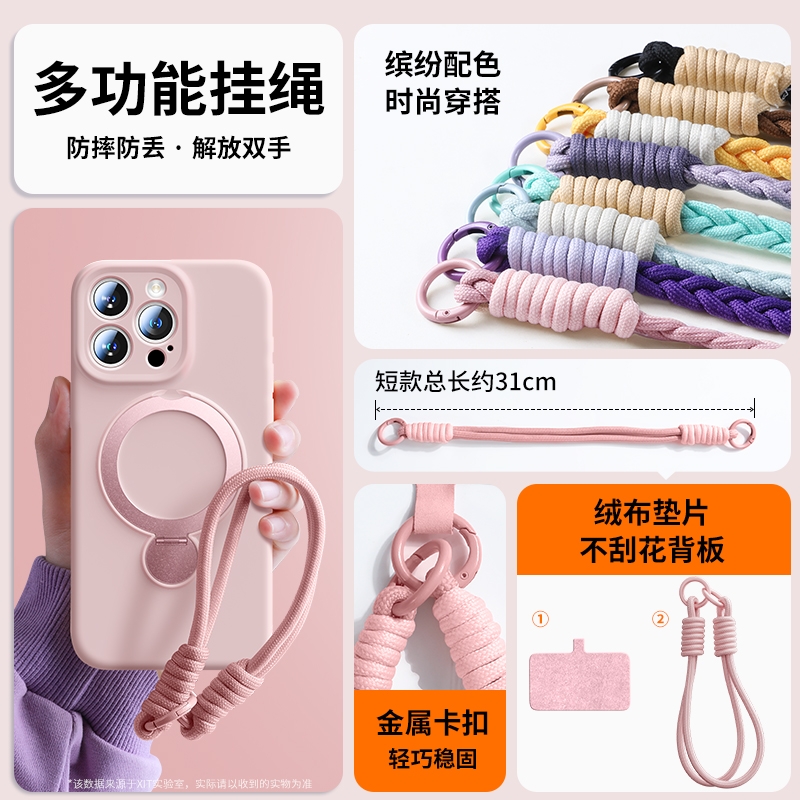 这是一款专为苹果最新型号手机设计的新款手机壳,适用于iPhone 16 Pro系列手机至iPhone 14系列手机。这款手机壳采用液态硅胶材质,触感柔软且防摔抗震。特色在于磁吸支架设计,为用户带来极大的便利性,既可以展示个性化魅力又能支持多种操作。此外,这款手机壳超薄全包设计,既保证了手机的轻巧便携,又充分保护手机免受外界损害。高级感的外观设计和女款特色,让这款手机壳独具魅力。配备挂绳,方便携带。PM外壳品质保证,让你的手机时刻得到最好的保护。
