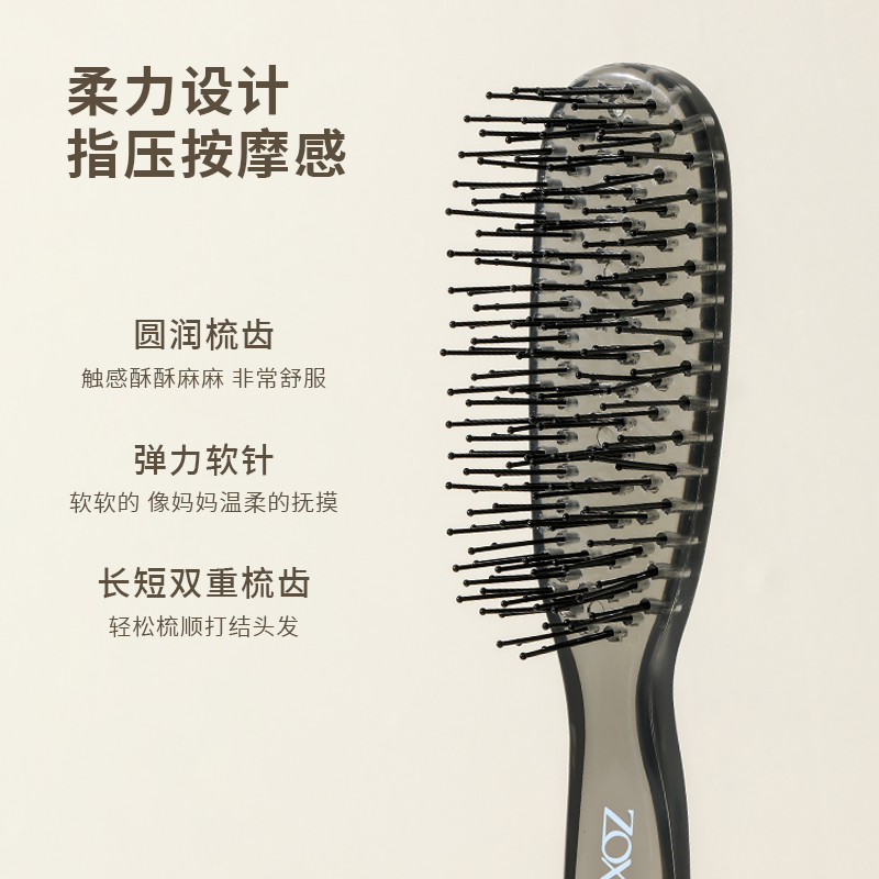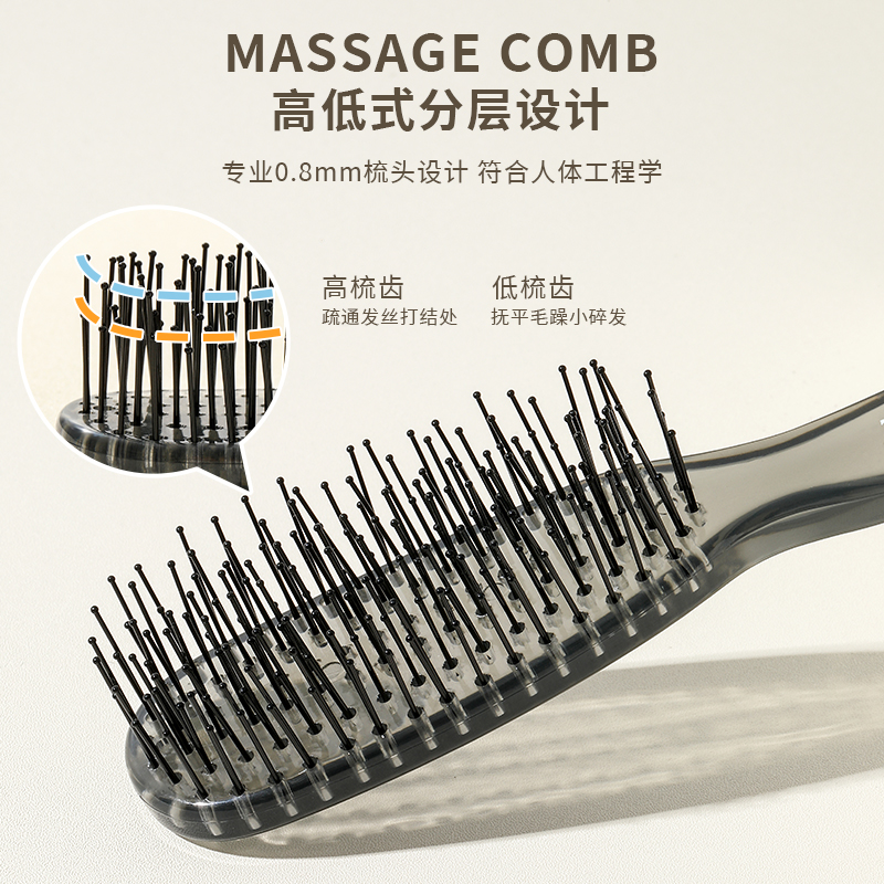左小妆分层魔力梳,一款干湿两用的梳子。独特设计旨在关注您的头皮健康,同时让梳理变得更加轻松。这款梳子具备顺发蓬松的功能,让您的头发瞬间变得柔软顺滑。其分层设计,能够深层清洁头皮,按摩头皮穴位,促进血液循环。无论是干发还是湿发,都能轻松应对。左小妆分层魔力梳,不仅是一把梳子,更是您头皮健康的守护者,让您的头发焕发自然光泽。一梳即可享受舒适的头皮按摩,呵护您的秀发,给您带来全新的梳理体验。