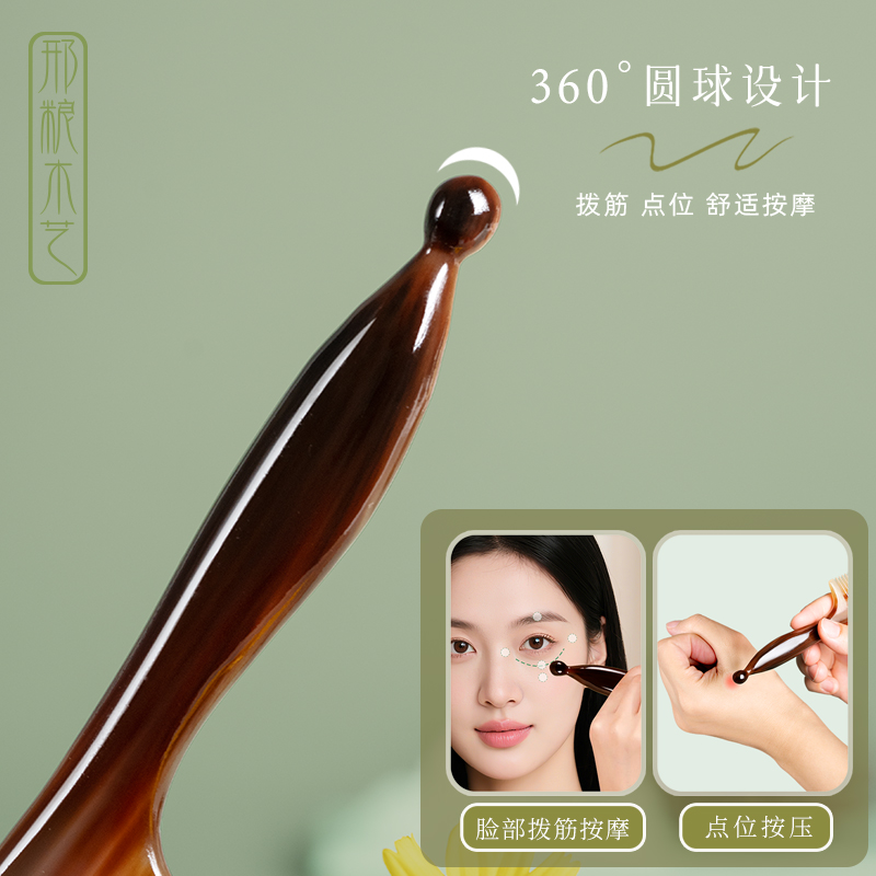 天晚安小灯泡小青蛙檀木按摩器护目神器利器刮鼻梳子眼部眼周按摩棒