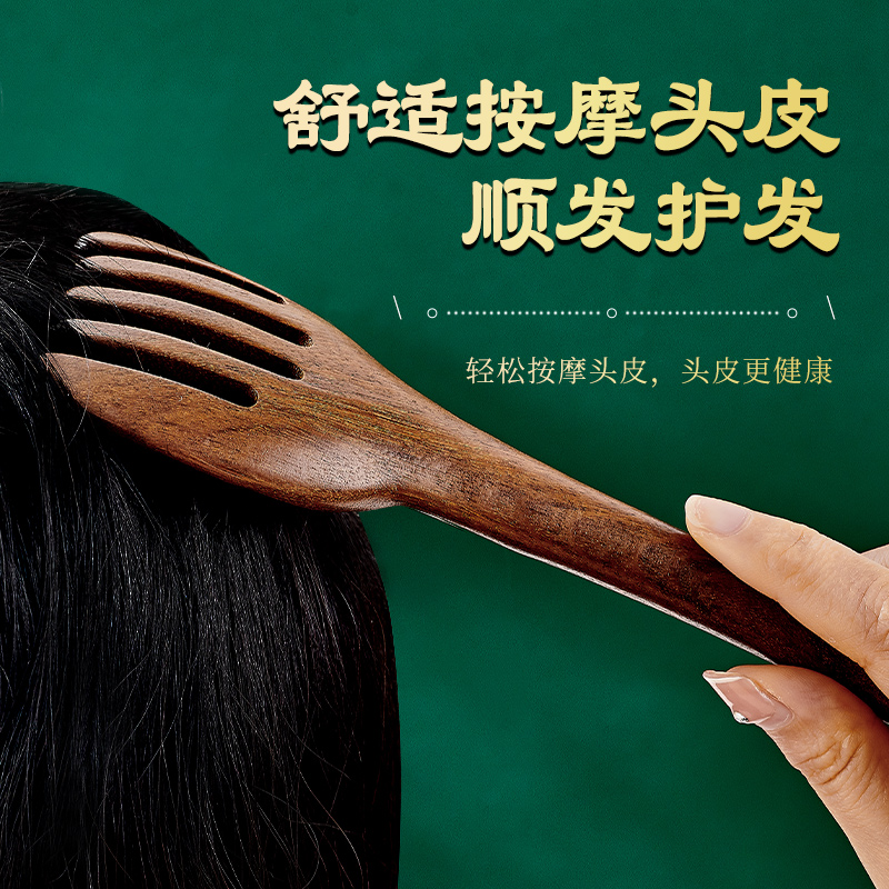虞美人头皮按摩梳子经络头部疏通按摩梳子木梳檀木梳实用生日礼物
