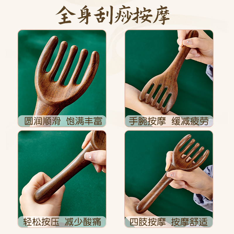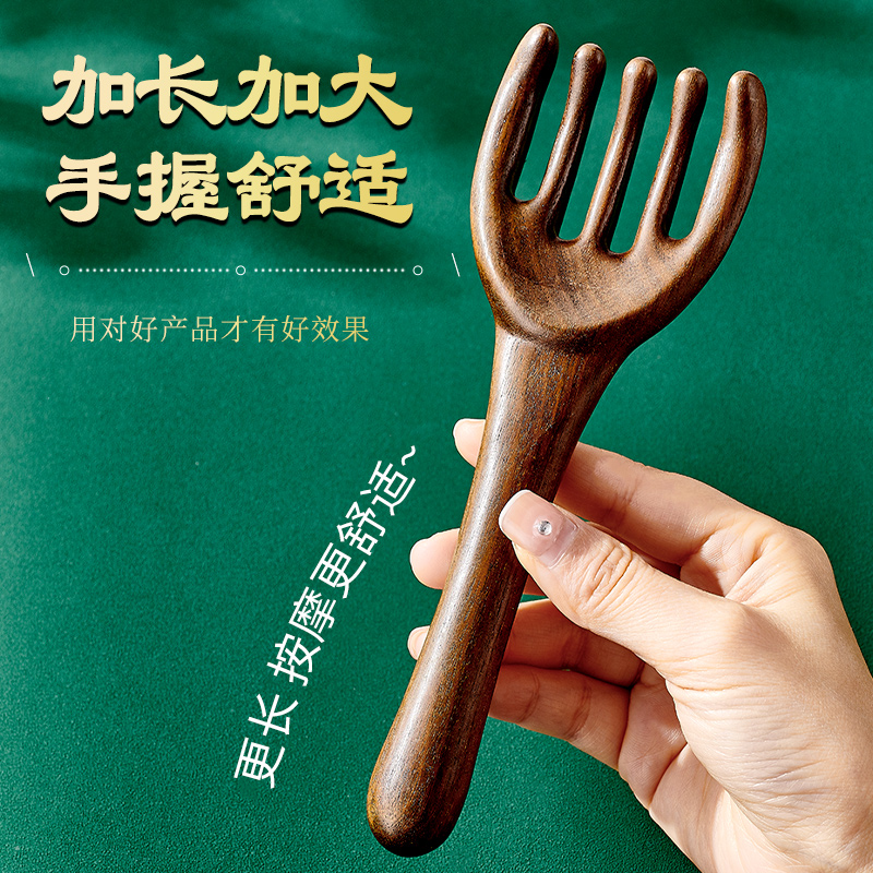 天猫檀木加大佛手经络梳子加厚五指按摩梳肩颈头部全身放松头疗按摩器