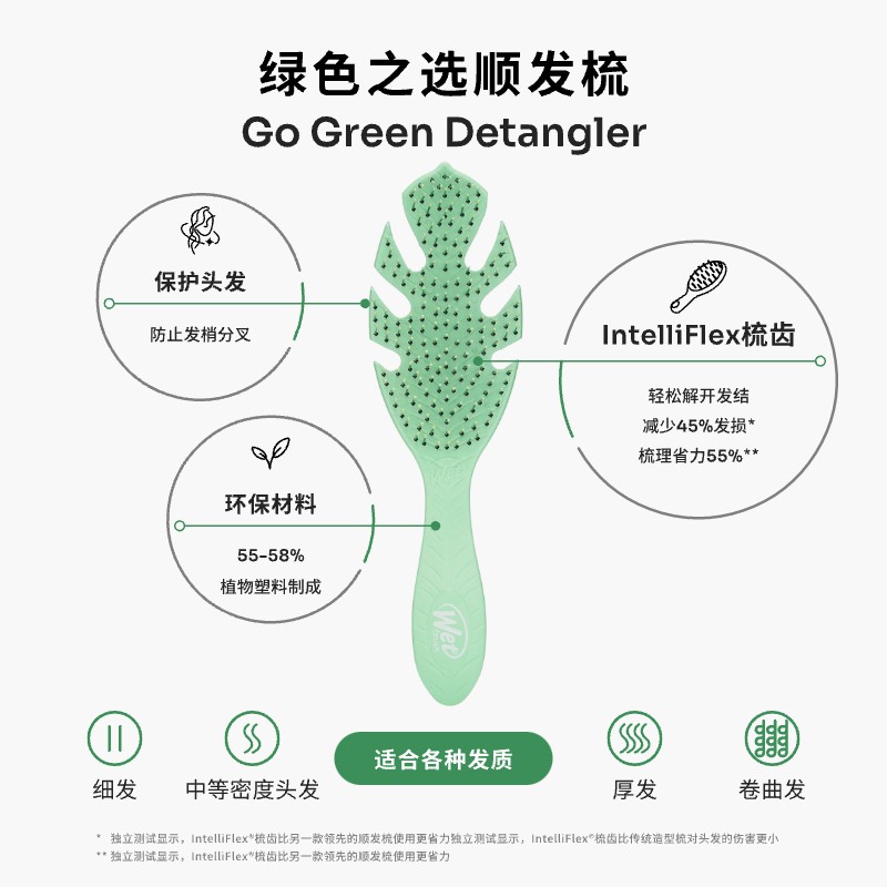 天猫WetBrush绿色之选系列环保顺发梳便携镂空速干蓬松梳干湿两用梳子