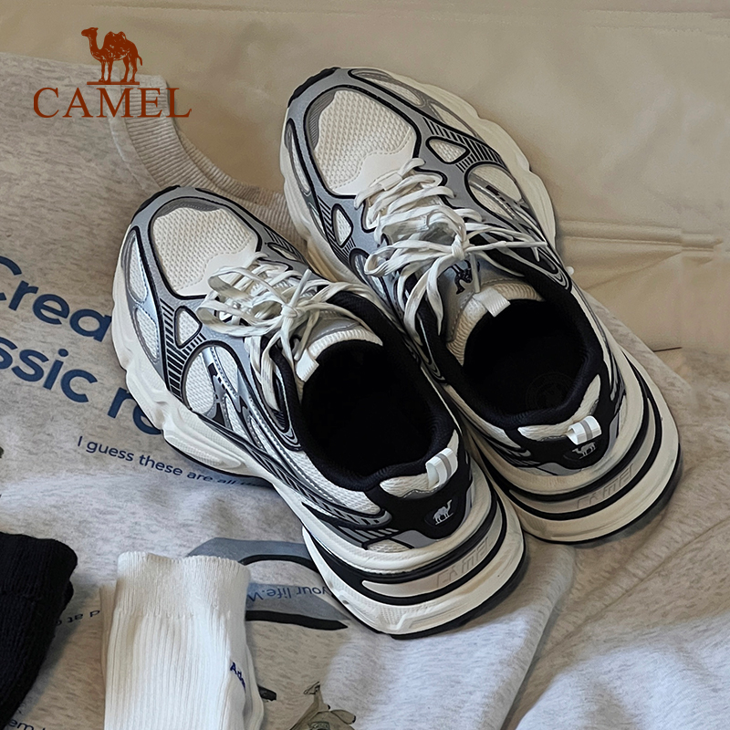 天猫骆驼老爹鞋星空新款网面增高女鞋防滑银色跑步时尚复古运动鞋男