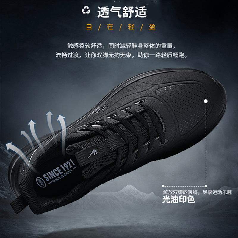 淘宝双星鞋子男款运动鞋秋冬男士皮面防水轻便跑步鞋男休闲黑色工作鞋