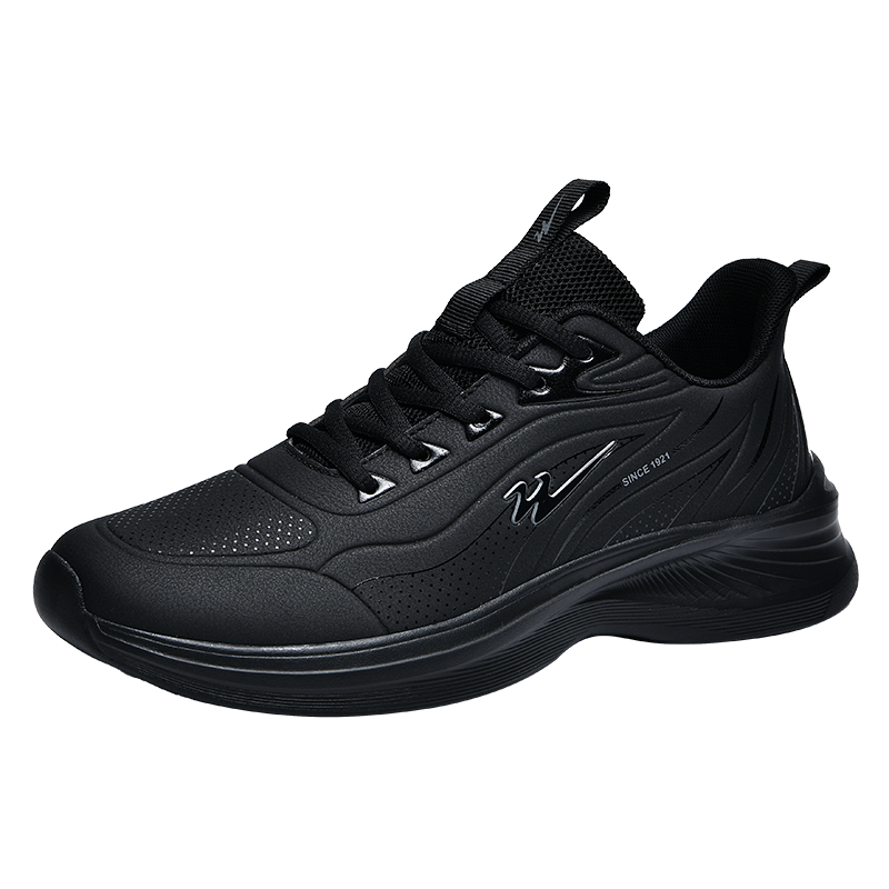 防水防滑男鞋子潮鞋秋冬季新款休闲鞋软底跑步鞋黑色皮面运动鞋男