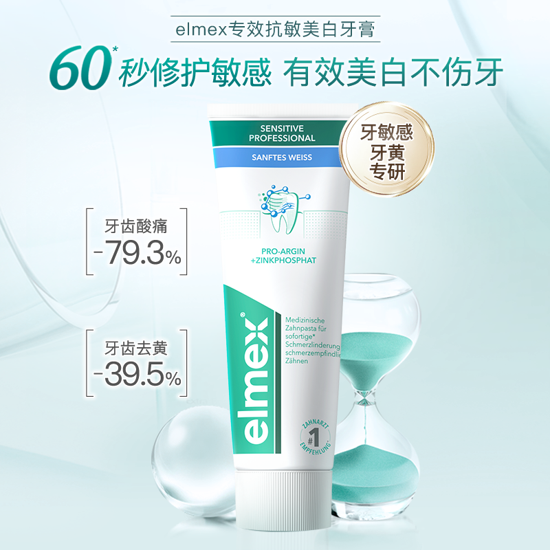 天猫elmex艾美适抗敏感牙膏含氟防蛀防龋齿固齿去黄净白成人美白牙膏