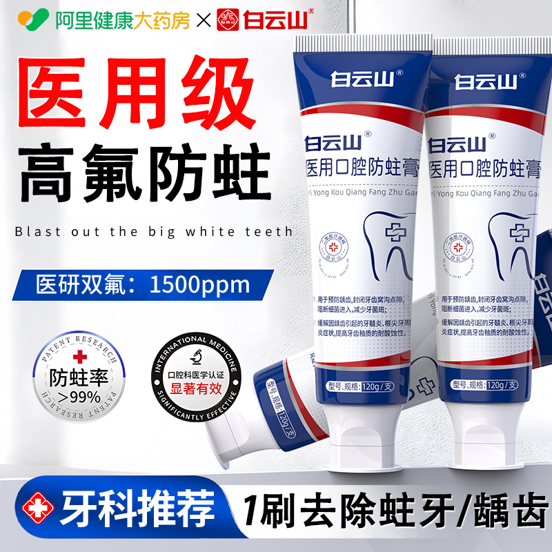 天猫白云山医用含氟防蛀牙膏牙龋齿修护去黄口臭菌斑抗敏感成人专用