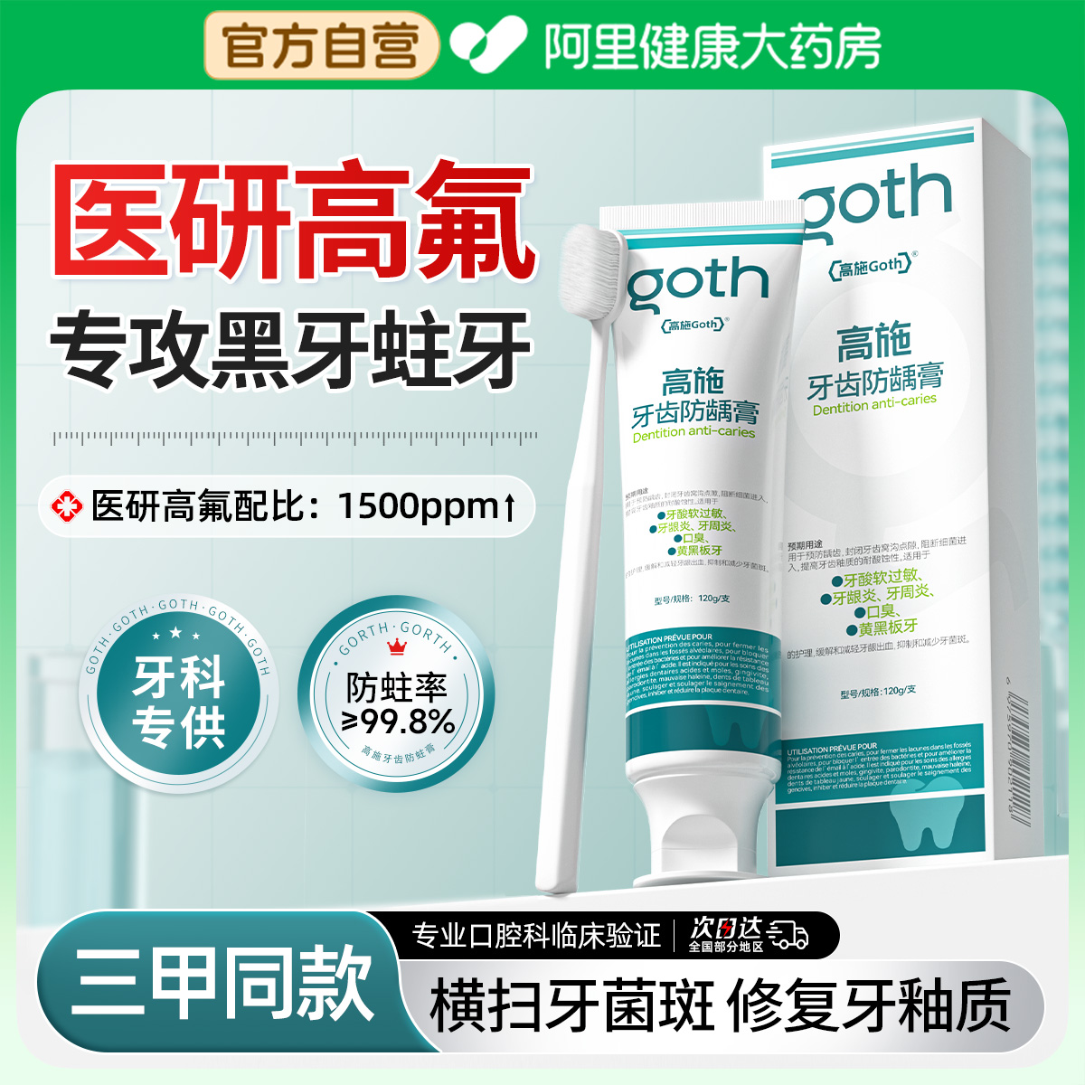 医用高含氟牙膏防蛀牙龋齿修复抗敏青少年成人专用正品官方旗舰店