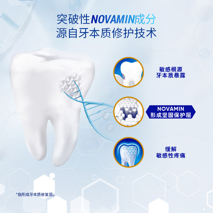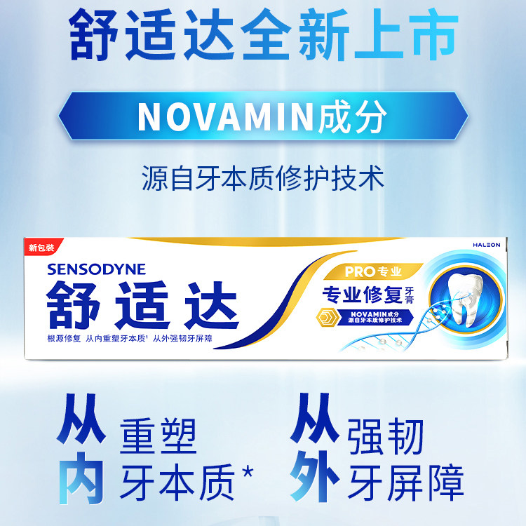 舒适达抗敏感牙膏多效护理专业修复系列,专为缓解牙齿过敏酸痛而设计,采用Novamin专业修复技术,能有效封堵暴露的牙小孔,从根源减少敏感。牙膏含氟配方,在舒缓敏感的同时强化牙釉质,帮助预防蛀牙,提升牙齿整体健康。其温和低磨损配方,适合日常使用,不刺激牙龈,带来清新口气与洁净体验。多效合一,兼顾抗敏、防蛀、修复与清洁,是成人家庭护理的理想选择。坚持使用,可显著改善冷热酸甜刺激引发的酸痛不适,让牙齿重拾坚固与舒适,绽放自信笑容。