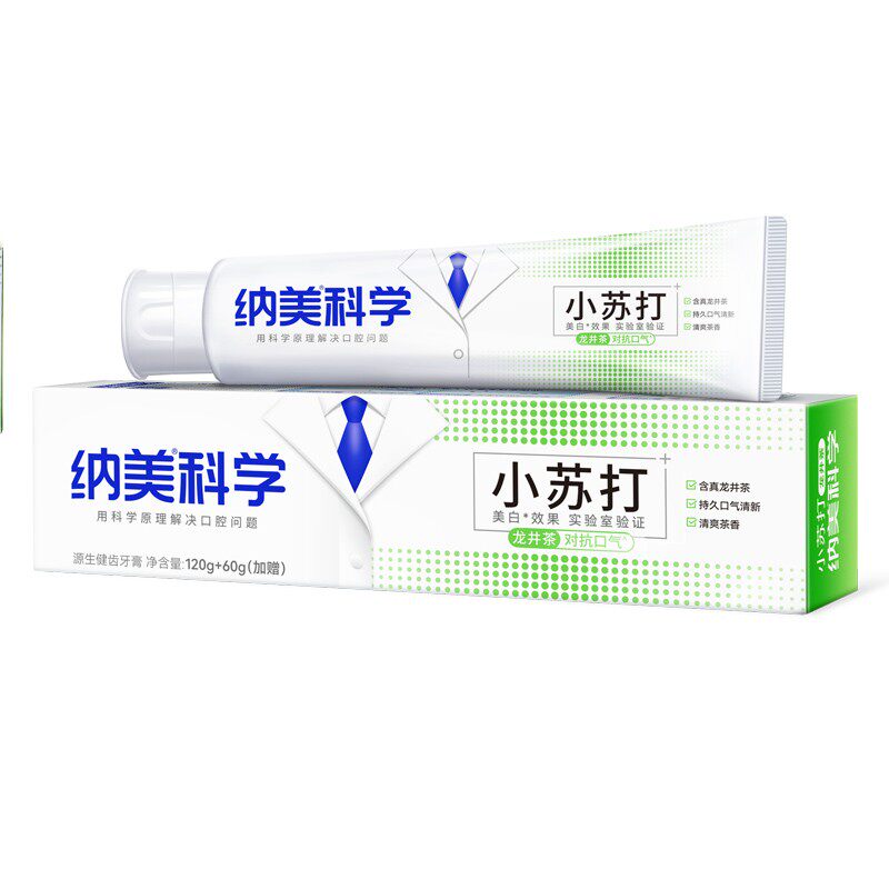 淘宝纳美小苏打牙膏加量装龙井茶清爽茶香清新口气洁白牙齿减轻牙渍