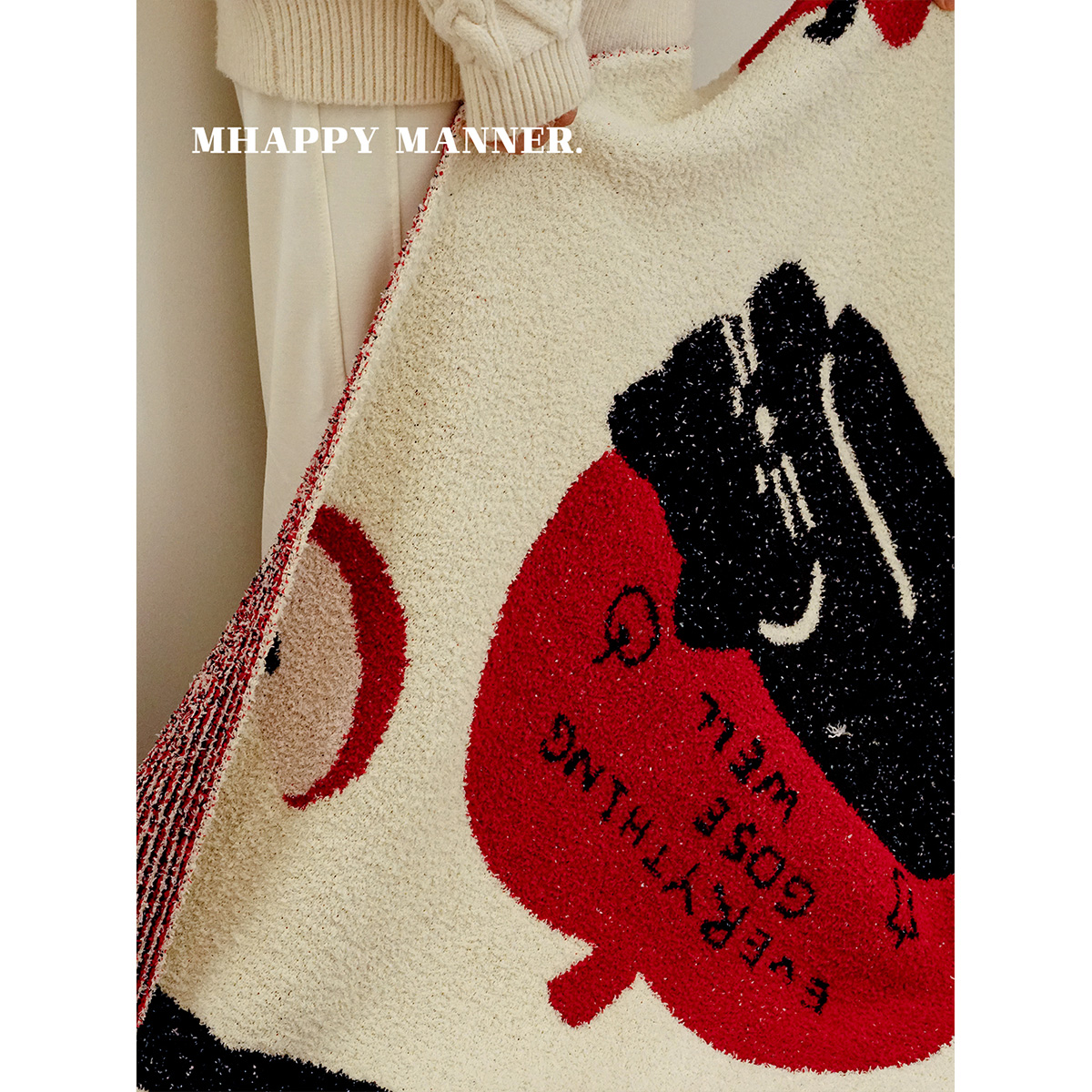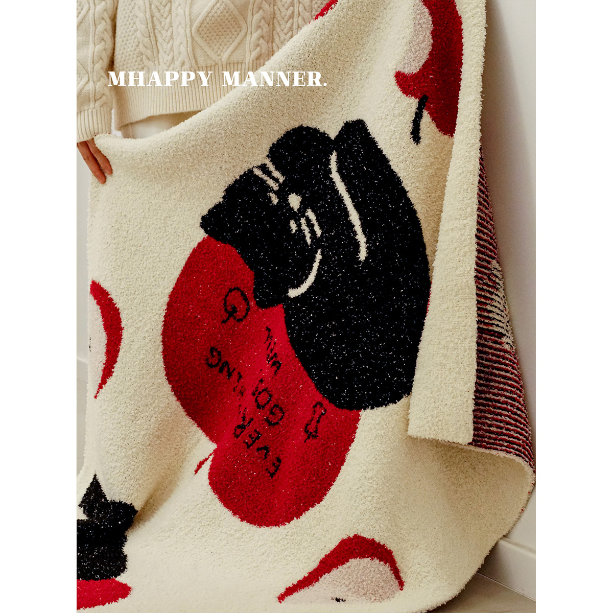 淘宝MhappyManner 原创苹果小猫半边绒盖毯加厚 休闲毛毯午睡空调毯子